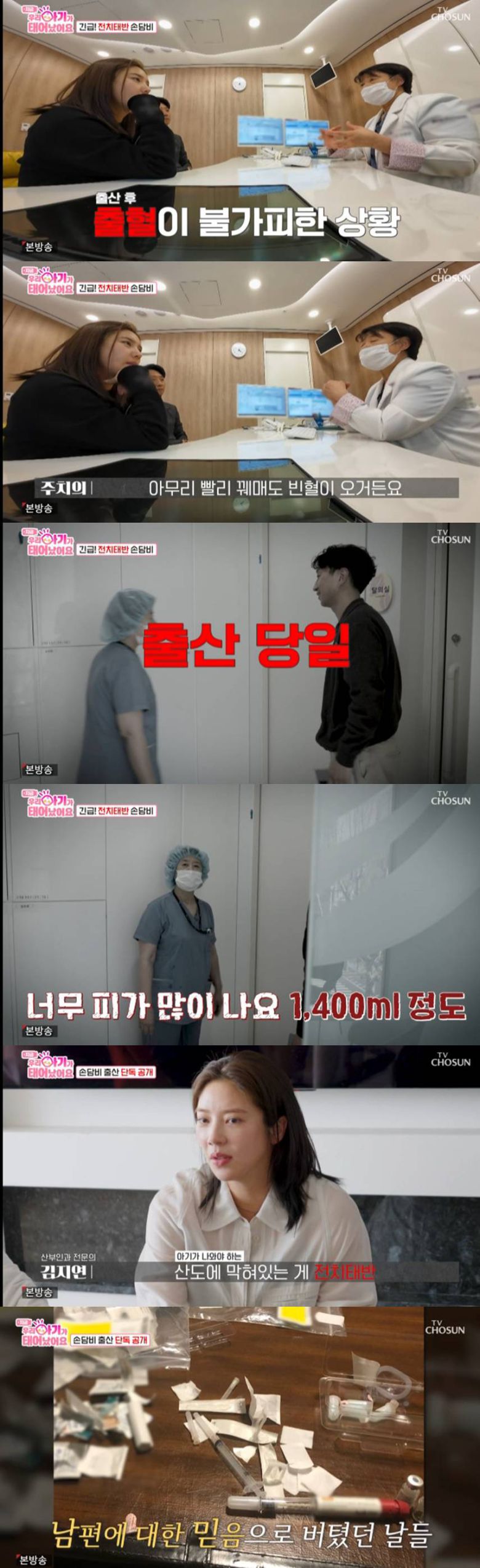 출산 당일 주치의는 "들어가는 순간 전치태반 자궁이었다"라며 "(손담비 씨가) 생각보다 피가 많이 났다. 1400ml"라고 말해 걱정을 자아냈다.