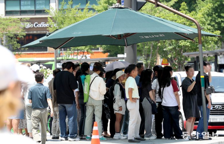 지난해 6월 12일 서울 종로구 세종대로 사거리 그늘막에서 횡단보도를 건너려는 시민들이 햇볕을 피하고 있다. 지난해 여름 열대야는 20.1일로 역대 1위를, 폭염은 30.1일로 역대 2위를 기록했다. 기상 전문가들은 “올해도 기록적인 폭염이 발생할 가능성이 크다”고 전망했다. 동아일보DB |