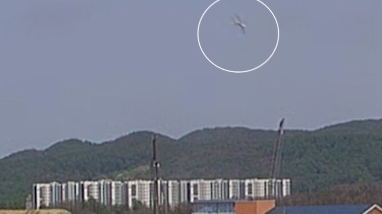또 다른 각도에서 찍힌 영상에서는 사고기가 기체를 오른쪽으로 숙이다가 조종석이 바닥을 향한 채로 돌면서 떨어졌습니다.