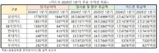 [DQN] 삼성카드 수익성 1위·신한카드 고전…하나·우리카드 성장세 ‘두각’ [2025년 1분기 카드사 리그테이블-수익성]