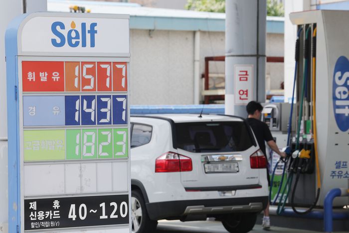 지난 25일 경기 고양시의 한 주유소에 휘발유·경유 가격이 표시돼 있다. [사진 = 연합뉴스]