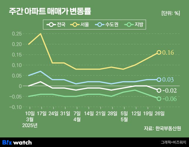 주간아파트 매매가 변동률/그래픽=비즈워치