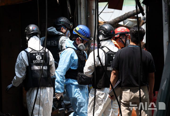 [서울=뉴시스] 홍효식 기자 = 경찰, 소방, 국립과학수사연구원, 가스공사 등 관계자들이 30일 서울 중구 을지로 세운상가 인근에서 화재 현장 합동 감식을 하고 있다. 2025.05.30. yesphoto@newsis.com
