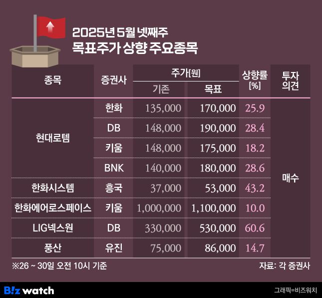 2025년 5월 넷째주 목표주가 상향 주요목록 |