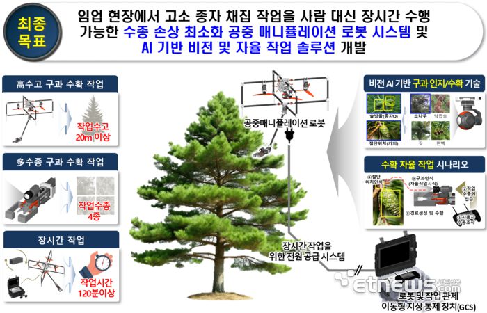 한국로봇융합연구원(KIRO·원장대행 정구봉)은 산림청과 한국임업진흥원이 지원하는 '2025년도 디지털 기반 산림 우수종자 생산공급 기술개발 사업'의 일환으로 '종자 채집 자동화 기술개발 사업'을 수행한다고 31일 밝혔다.