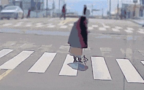 영상에는 횡단보도 신호등이 빨간불인데도 한복판에서 남녀가 사진을 직고 있어 차량이 주행 신호에도 멈춰야 하는 장면으로 시작한다.