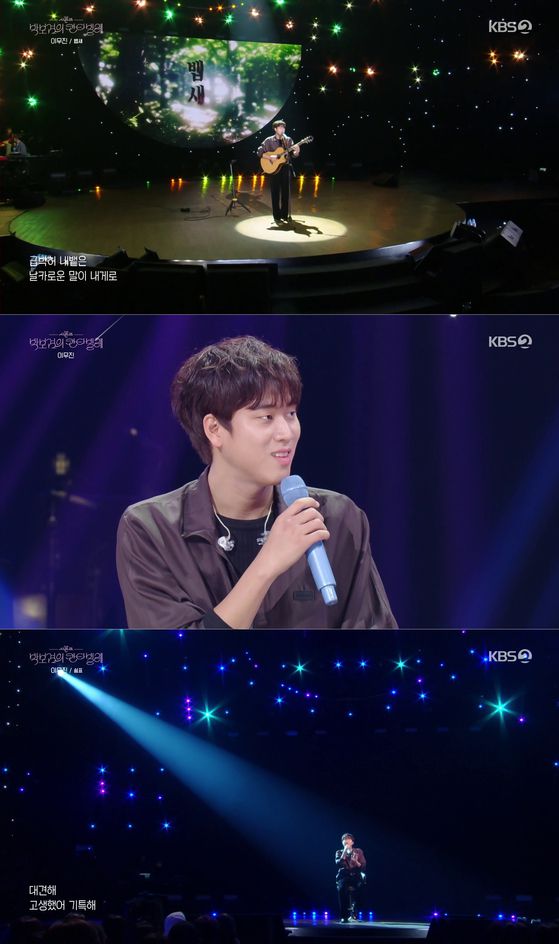 이무진은 30일 방송된 KBS2 음악 프로그램 '더 시즌즈–박보검의 칸타빌레'에 출연해 신곡 '뱁새'를 비롯해 다양한 라이브 무대로 진한 여운을 남겼다. '우리들의 가능성'이라는 주제로 꾸며진 이날 방송에서 이무진은 직접 기타를 들고 무대에 올라 최근 발표한 신곡 '뱁새'를 처음으로 선보였다. '뱁새'는 최선을 다했지만 결국 포기할 수밖에 없었던 상황 속 감정을 외로운 '뱁새'에 비유해 표현한 곡이다. 누구나 겪을 수 있는 좌절과 상실의 순간을 진솔하게 담아냈다.