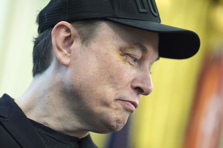 | 오른쪽 눈가에 멍이 든 채 백악관에 나탄난 일론 머스크 / 사진 = AP |