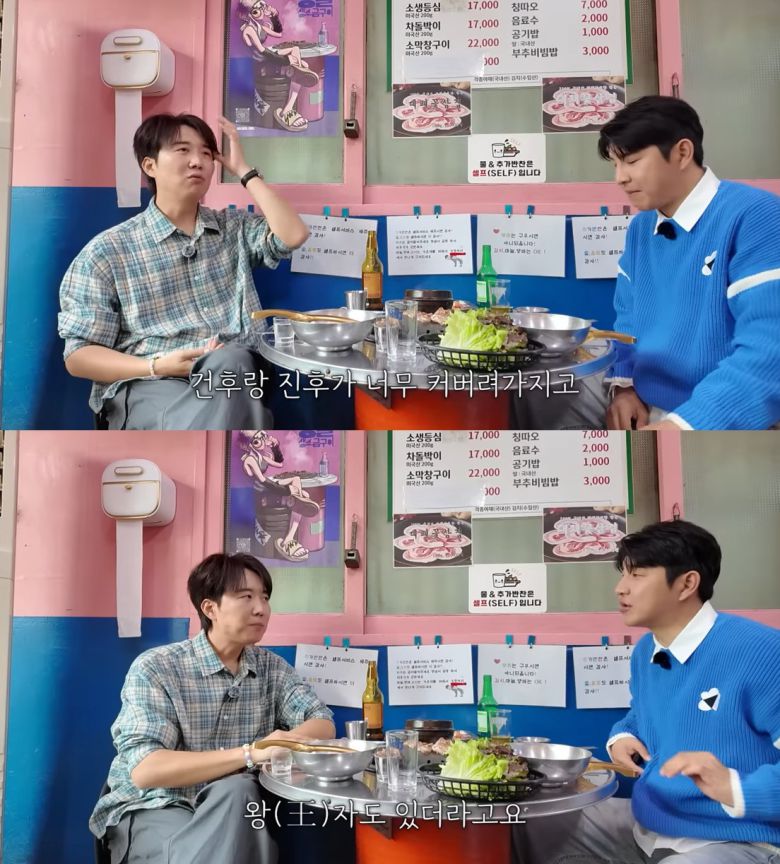 건후는 넘긴 머리 스타일링으로 박주호와 함께 미모를 뽐냈다.