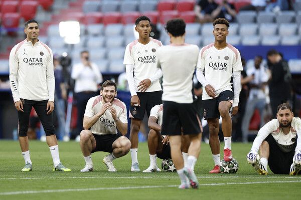 이강인과 파리 생제르맹(PSG, 프랑스)은 31일 오전(한국시간) 독일 뮌헨의 풋볼 아레나(알리안츠 아레나)에서 2024-25 유럽축구연맹 챔피언스리그(UCL) 인테르 밀란(이탈리아)과의 결승전을 하루 앞두고 마지막으로 몸을 풀었다.