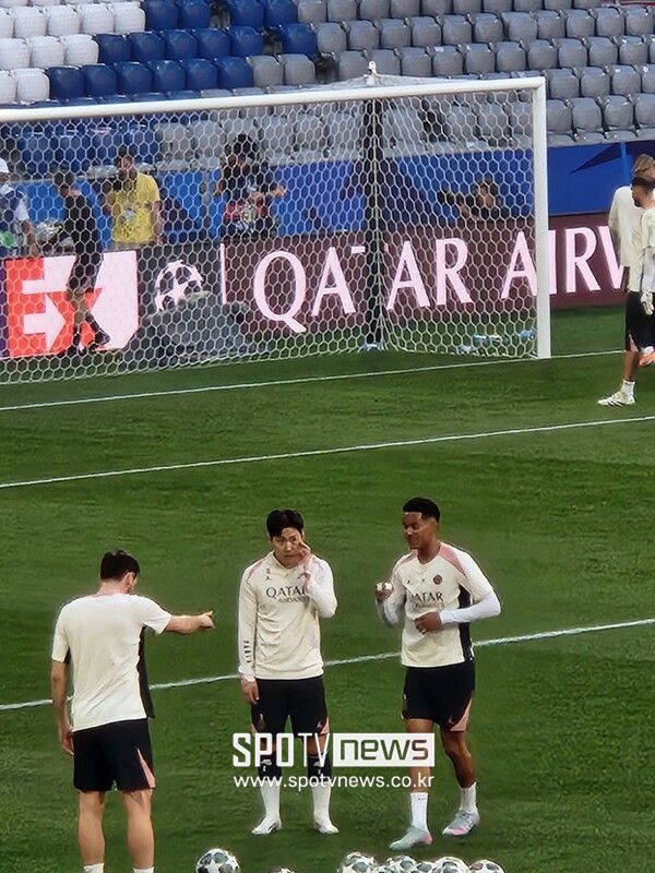훈련 막판 엔리케 감독은 각국 경기 주관 방송사 생방송 인터뷰에 바빴다. 영국 '스카이 스포츠'부터 프랑스의 'DAZN' 등 다양한 방송사를 돌았다. 이강인을 끝까지 살필 여유가 없었다. 물론 같은 상황에서 뎀벨레도 카타르 기반의 중동 스포츠 방송 '비인 스포츠'와 대면했고 두에는 미국 'CBS 스포츠' 등 여러 곳을 돌면서 인터뷰했다.