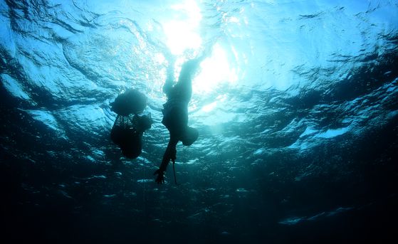 제주도 해안 바닷속에서 해산물을 채취하고 있는 해녀 모습. 제주 해녀들은 저체온증과 고혈압 위험을 줄이는 특별한 유전적 변이를 갖고 있다는 연구 보고서가 최근 발표됐다. [연합뉴스] |