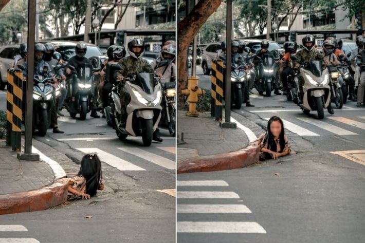 31일(현지시간) 싱가포르 매체 스트레이츠타임스 등에 따르면 지난 26일 마닐라의 금융 중심지인 마카티 지역 큰 길가 하수구에서 한 여성이 기어 나오는 모습이 한 아마추어 사진작가에 포착됐다.