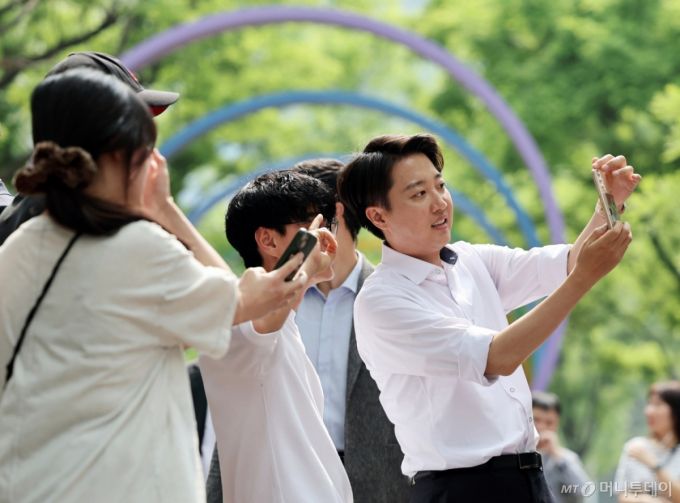 (안양=뉴스1) 오대일 기자 = 이준석 개혁신당 대통령 후보가 제21대 대통령 선거를 사흘 앞둔 31일 오후 경기 안양시 평촌로데오거리를 찾아 지지자들과 '셀카'를 찍고 있다. 2025.5.31/뉴스1 Copyright (C) 뉴스1. All rights reserved. 무단 전재 및 재배포, AI학습 이용 금지. /사진=(안양=뉴스1) 오대일 기자 |