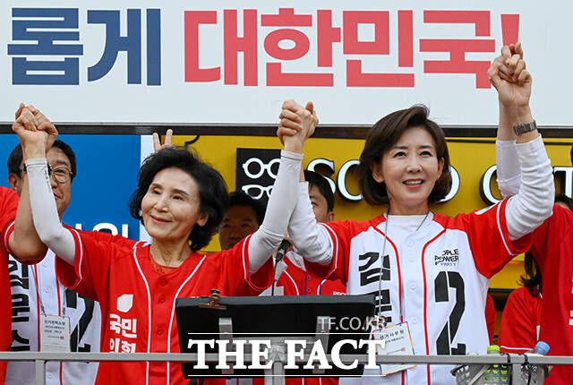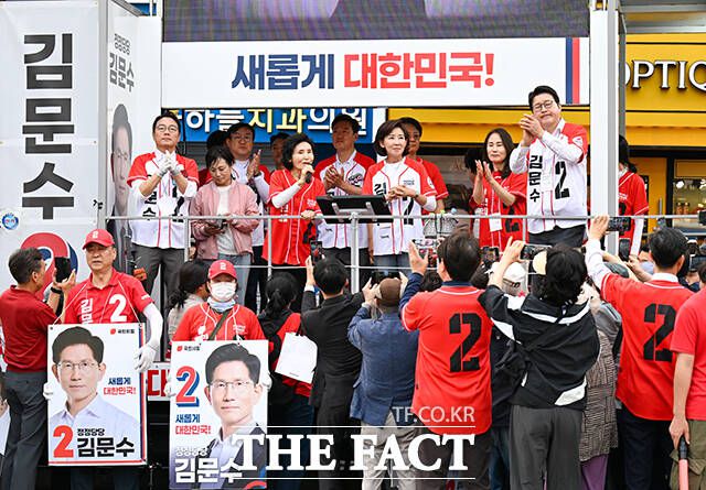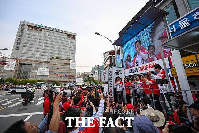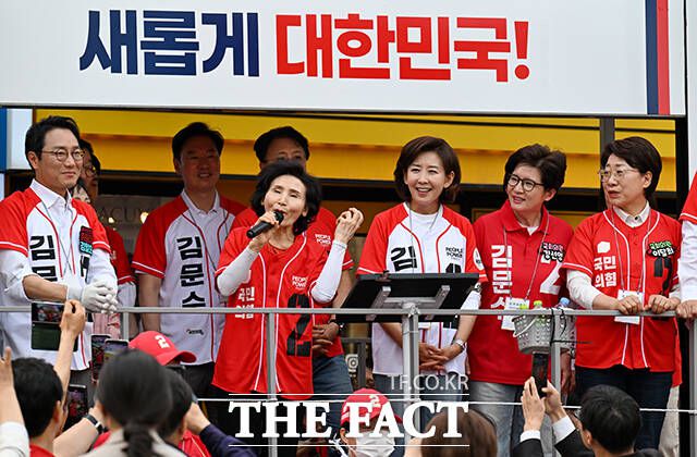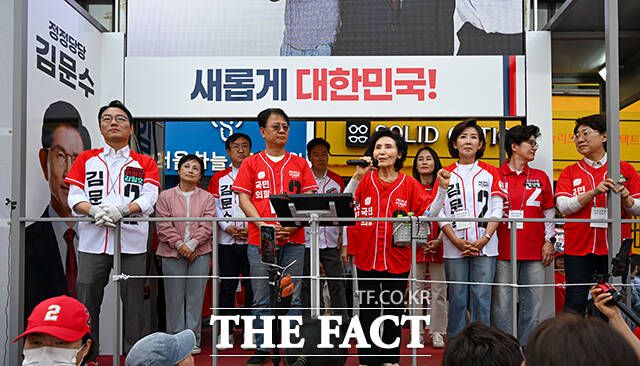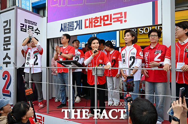 [더팩트ㅣ장윤석 기자] 김문수 국민의힘 대선 후보의 부인 설난영 여사가 31일 오후 서울 동작구 중앙대학교병원 앞에서 김 후보 지지를 호소하고 있다.