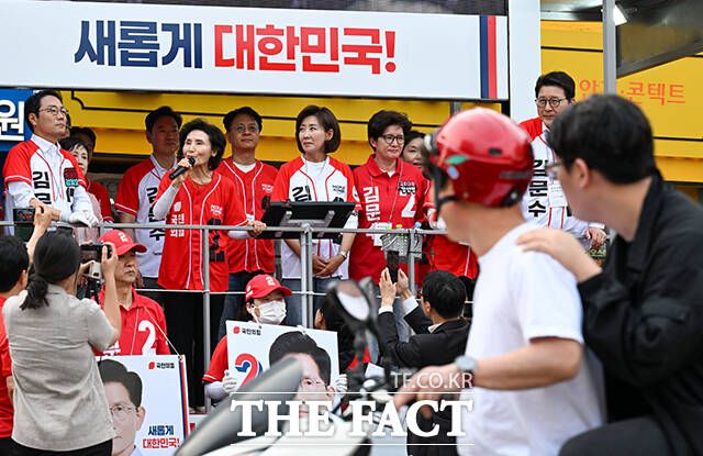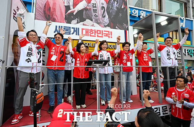 김 후보의 부인 설 여사는 이날 서울 동작구 흑석동 중앙대병원 앞, 은평구 대림골목시장 등지에서 나경원·안철수 공동선대위원장 등과 함께 선거운동을 이어갔다.