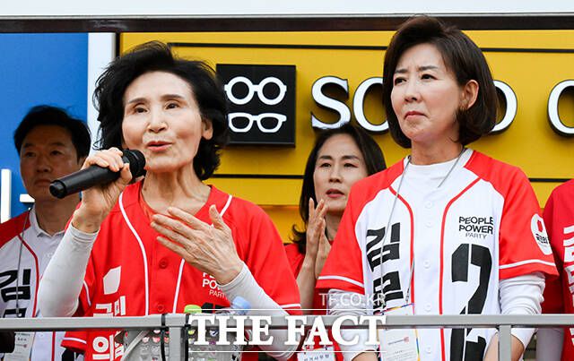 동작구 집중 유세에서 남편 지지 호소하는 설난영 여사 [TF사진관]