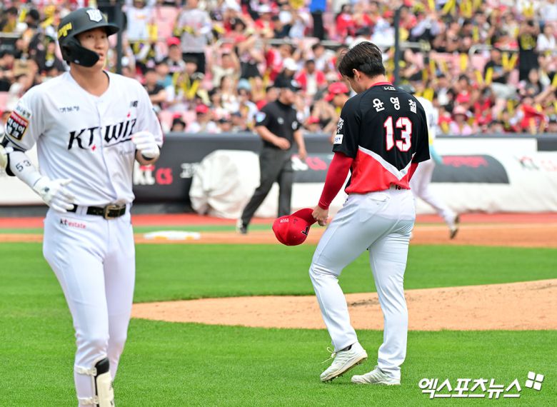 윤영철의 무실점 행진에 마침표가 찍힌 건 3회말이었다. 윤영철은 김상수의 유격수 땅볼, 안현민의 중견수 뜬공 이후 2사에서 로하스에게 선제 솔로포를 헌납했다. 올 시즌 윤영철의 세 번째 피홈런.