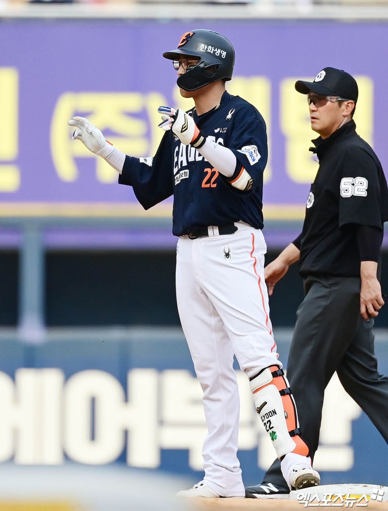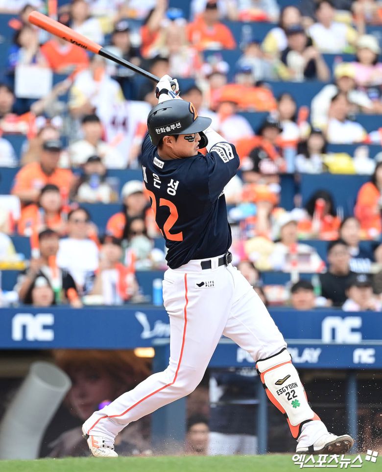 (엑스포츠뉴스 창원, 조은혜 기자) 한화 이글스의 '캡틴' 채은성이 또 결정적인 한 방으로 팀의 승리를 이끌었다.