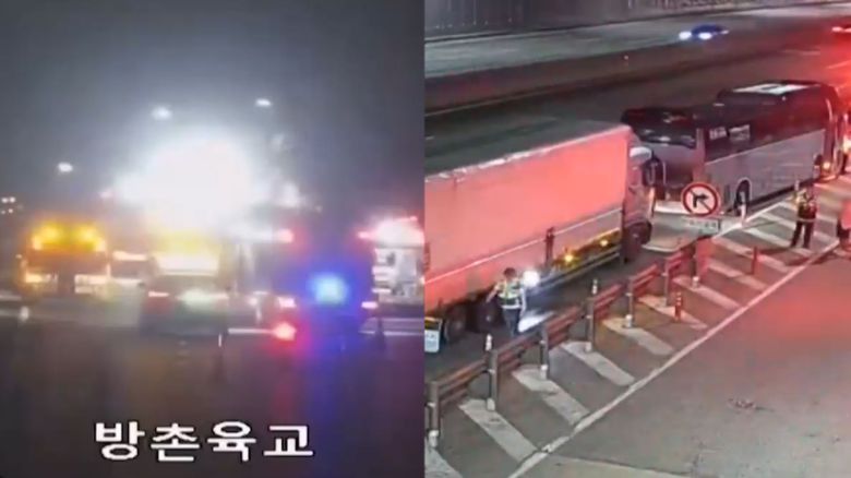 앞서 새벽 1시 10분쯤에는 경기 용인시 경부고속도로 수원신갈나들목 인근에서 16톤 화물차와 관광버스가 추돌했습니다.