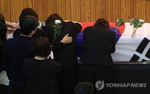 고 강신원 상사의 어머니는 관을 부여잡고 "엄마를 왜 두고 가느냐"며 통곡했다.