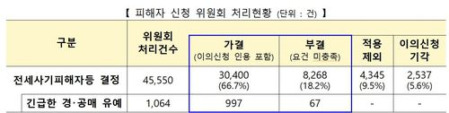 부결된 1천66건 중 624건은 요건 미충족으로, 246건은 보증보험이나 최우선변제금 등으로 보증금을 전액 돌려받을 수 있다는 사유로 피해 인정이 안 됐다.