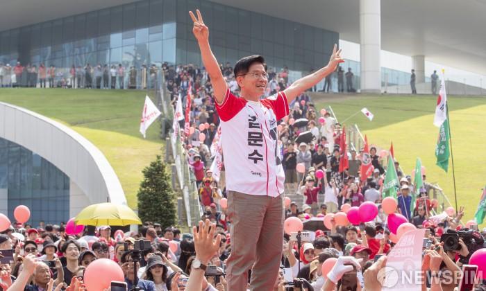 한편 이날 유세 현장에는 이인제·손학규 전 경기도지사가 등장해 김 후보 지지를 호소하기도 했다.