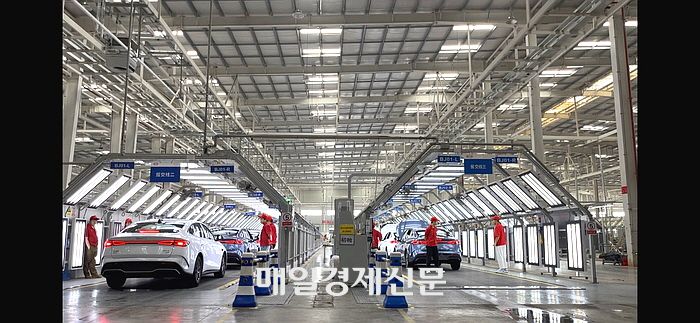 지난달 28일 기자가 방문한 중국 산둥성 지난시 소재 BYD의 전기차 공장. 올해 들어 급증한 주문을 소화하기 위해 각 제조 라인이 분주하게 움직이고 있다. 이곳에서는 ‘아토3(위안플러스)’와 ‘씰06 DM-i’ 등 인기 모델을 생산 중이며 올해 들어 현재까지 생산량은 약 40% 증가했다.  <지난 송광섭 특파원>