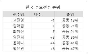 그나마 고진영이 3라운드에서 2언더파를 기록하며 공동 13위로 순위를 끌어올리며 선전했다.