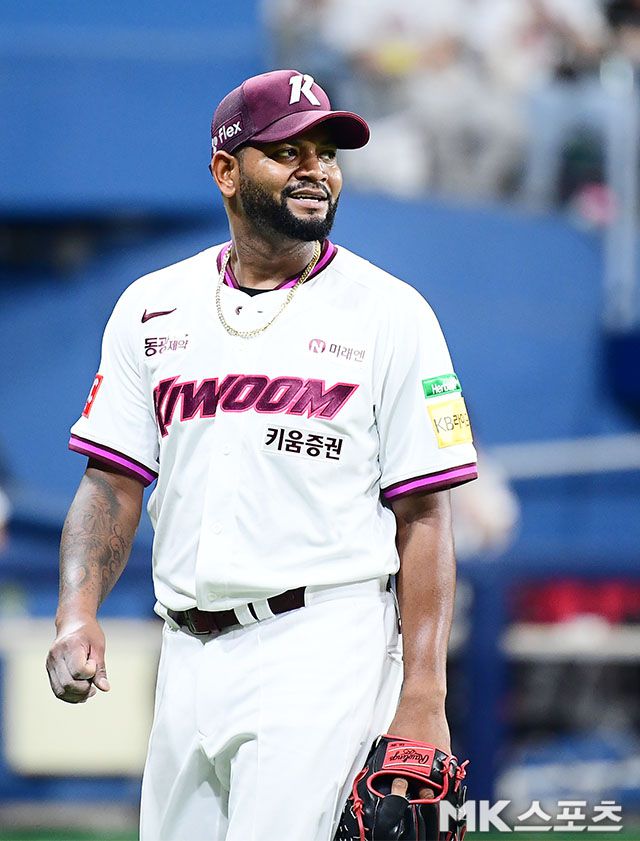 키움 선발 알칸타라가 5회초 수비를 마친 후 더그아웃으로 향하고 있다.