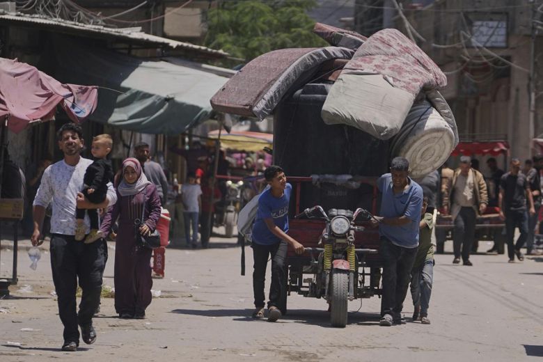 팔레스타인 무장 정파 하마스는 스티브 위트코프 미국 중동특사가 제안한 휴전안에 관한 답변서를 중재자들에게 제출했다고 타임오브이스라엘 등이 31일(현지 시간) 보도했다. 사진은 지난 30일 가자지구 가자시티에서 피란민들이 대피하는 모습. 2025.06.01 가자시티=AP/뉴시스