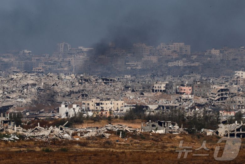 가자지구 북부에서 연기가 피어오르는 모습. 2025. 5. 21 ⓒ 로이터=뉴스1 ⓒ News1 박우영 기자