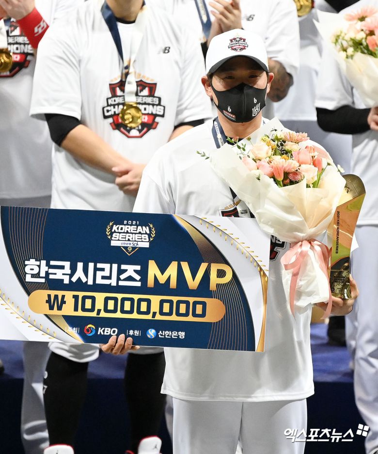 가장 기억에 남는 장면을 물었다. 이 감독은 "타이브레이크 경기에서 마지막에 구자욱(삼성 라이온즈)의 타구를 잡아 2루 땅볼을 만든 것과 한국시리즈에서 병살타를 만든 것, 그리고 목발을 짚고 걸어 나오던 게 기억 난다"며 "수비를 진짜 잘했다. 다른 선수들보다 한두 발 정도 더 빨랐다"고 전했다.
