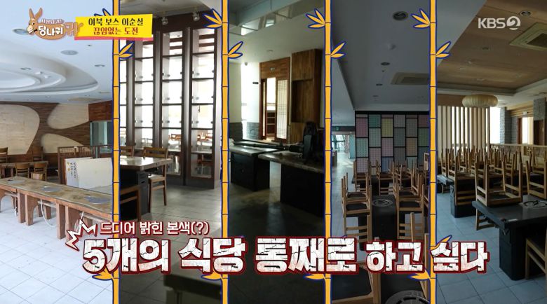 이순실은 "말하자면 이게 평양 옥류관이라고 생각하면 된다, 총 5개의 식당을 다 하고 싶다"고 말했다. 그러자 직원인 장병택은 "제가 아는 것만 해도 세 번을 망하셨는데 여태까지 한 것보다 더 크게 말아먹을 것 같다"며 걱정을 감추지 못했다. 이순실은 직원들에게 "정확히 총 900평이다, 이제 우리 같은 배 탔다"고 말했다.