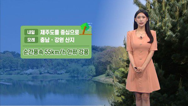 내일 제주도를 중심으로는 강한 바람이 불겠고요, 모레부터는 충남과 강원산지에 순간풍속 시속 55km 안팎의 강풍이 불어들겠습니다.