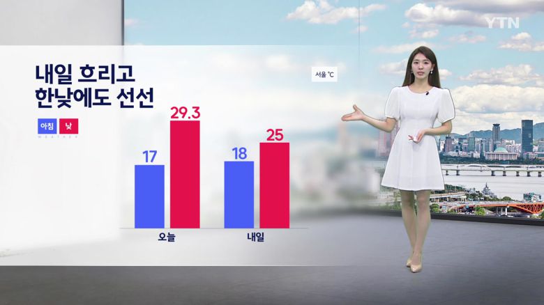 내일 서울 낮 기온, 25도로 오늘보다 4도가량 낮아지며 다소 서늘하게 느껴질 수 있겠습니다.