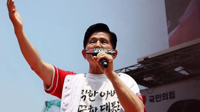 경기도 수원의 광교신도시에서 유세에 나선 김문수 국민의힘 후보.