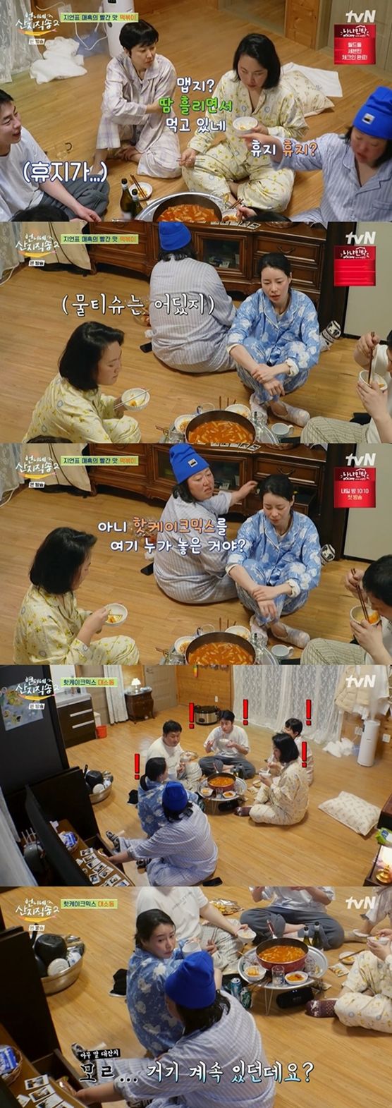 이날 멤버들은 야식으로 임지연이 직접 만든 떡볶이를 먹으며 시간을 보냈다. 박준면은 매운 떡볶이 탓에 땀을 흘리는 이재욱을 향해 휴지를 건넸다.