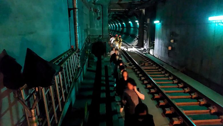 지하 터널로 탈출 ‘긴박한 순간’ 서울 지하철 5호선 여의나루역에서 마포역으로 향하던 열차에서 지난달 31일 방화로 인한 화재가 발생하자 승객들이 열차에서 내려 터널로 대피하고 있다. 연합뉴스 |