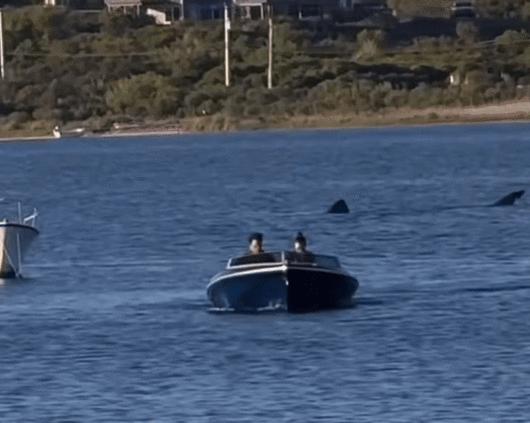 영상에는 작은 보트 한 척이 물속의 대형 상어를 피해 빠르게 이동하는 장면이 담겼다. 상어의 정확한 종은 확인되지 않았지만 길이는 약 6미터(20피트)에 달하는 것으로 보인다고 매체는 전했다.