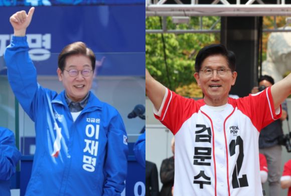 이재명(왼쪽) 더불어민주당 후보와 김문수(오른쪽) 국민의힘 후보.  연합뉴스