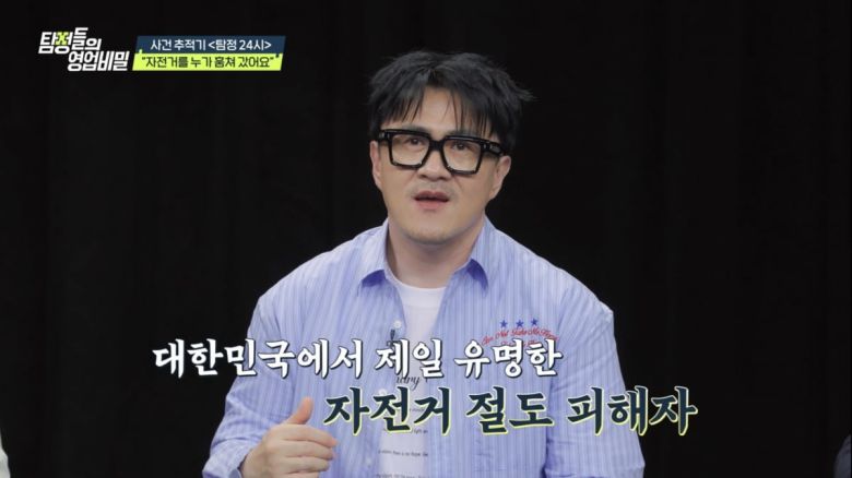 이에 '탐정들의 영업비밀' 스튜디오가 들썩인다. 김풍은 데프콘을 가리켜 "우리가 다 아는 대표적인 피해자가 옆에 있다"라며 흥분한다. 당사자인 데프콘은 "자전거 도둑질은 가만히 두면 안 된다"라며 울분을 토한다. 데프콘은 2020년, 집 앞에 세워둔 고가의 자전거 2대를 도난당해 1100만원 상당의 피해를 입은 바 있다. 데프콘은 "도둑맞은 후 범인이 분명히 한 번 더 올 거라고 생각하고 문 앞에 개인 CCTV를 설치했다. '너는 내가 무조건 쇠고랑 채울 거야'하고 기다렸는데 안 오더라"라고 아쉬움을 토로한다. 김풍은 "노트북, 핸드폰 다 안 훔쳐가는데 자전거는 이를 악물고 훔쳐간다. 왜 그런지 모르겠다"라고 이야기한다.