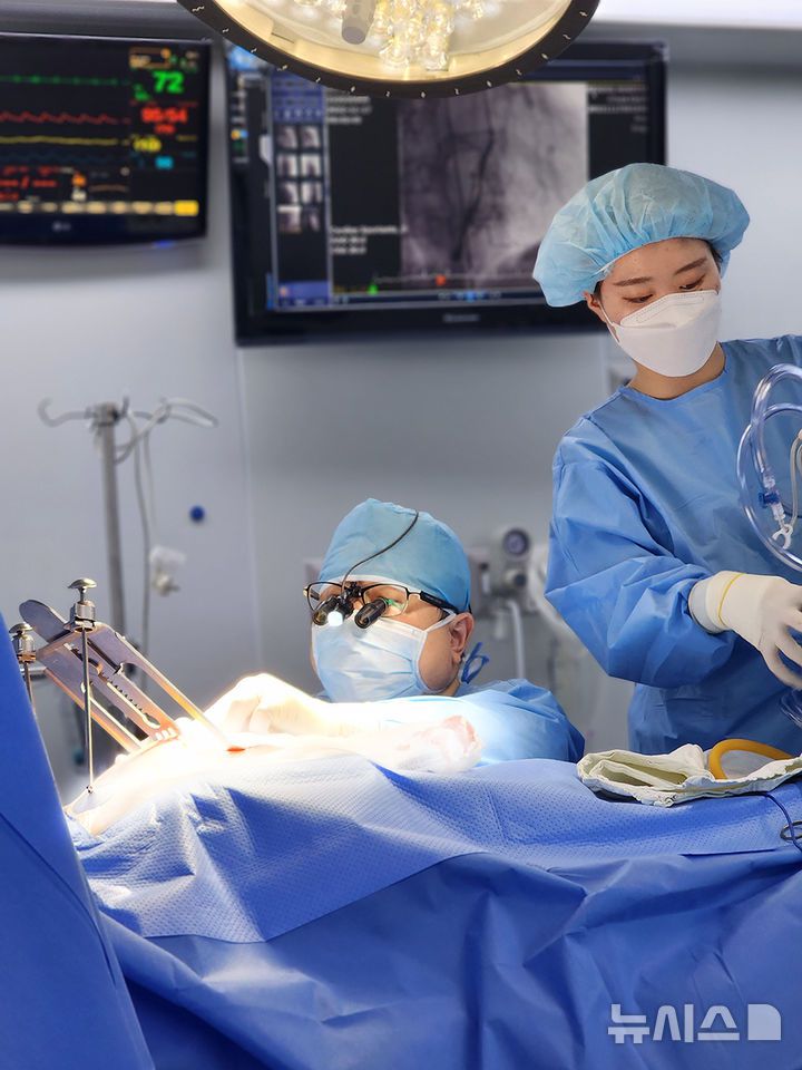 [인천=뉴시스] 정일형 기자 = 부천세종병원 염상윤 과장 최소침습 관상동맥우회술 집도. (사진=세종병원 제공) |