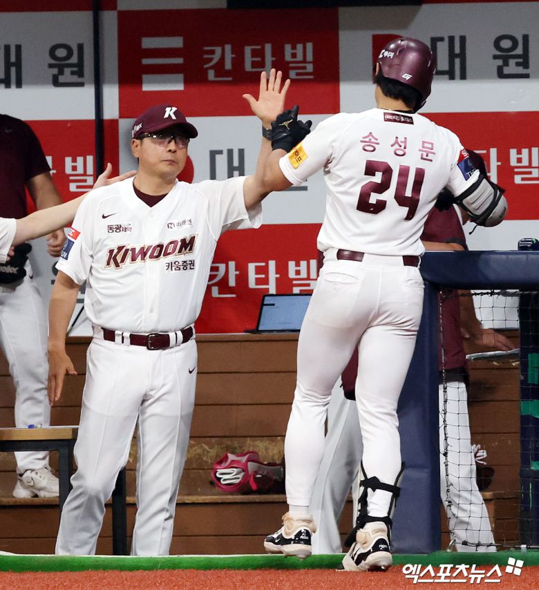 홍원기 감독은 "지난 5월 31일 게임을 끝난 뒤 감독실에서 코칭스태프와 경기 리뷰 회의를 진행했다"며 "마침 TV 중계로 송성문의 인터뷰가 나오는데 솔직히 나도 울컥했다"라고 돌아봤다.