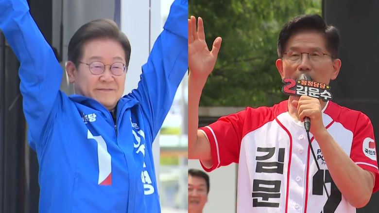<이재명 '험지 공세' vs 김문수 '동남풍 전국으로'>입니다.