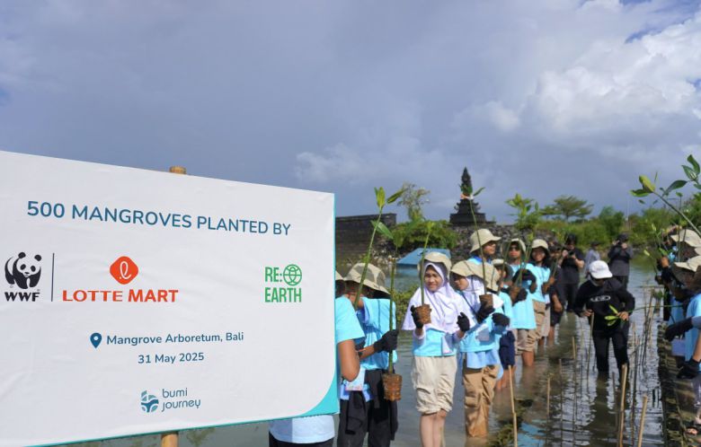 이번 캠프에서는 현지 초등학생 30명이 참석해 해양 생태계 보전 교육을 받고 발리 해안 복원 체험 활동을 함께 진행했다. 우선 롯데마트는 현지 초등학생들과 함께 맹그로브 에버리텀 공원(Mangrove Arboretum Park)에 방문해 ‘맹그로브 묘목’ 500그루를 직접 식재했다. 맹그로브는 탄소 저장 효과가 일반 나무에 비해 5배 이상 뛰어나다고 알려진 친환경 식물이다.