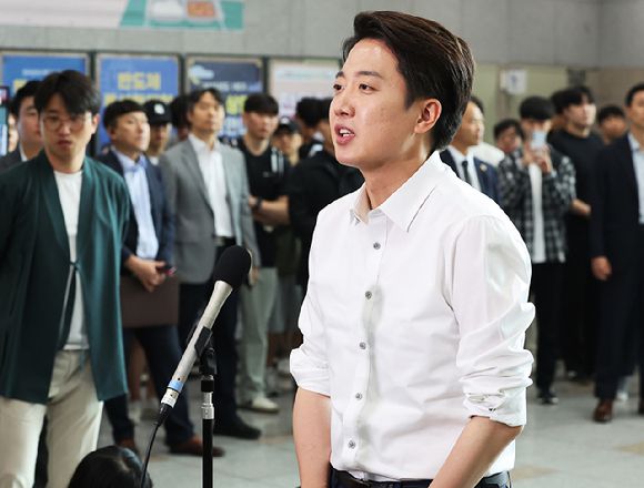 개혁신당 이준석 대선 후보가 2일 경기도 시흥시 정왕동 한국공학대학교에서 열린 '학식먹자 이준석' 행사에서 취재진 질문에 답하고 있다. 2025.6.2 [사진=연합뉴스] |