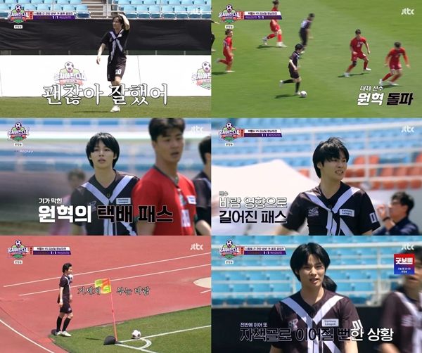 원혁은 지난 1일 방송된 JTBC 예능 프로그램 ‘뭉쳐야 찬다4’(이하 ‘뭉찬4’) 9회에서 싹쓰리UTD의 중앙 미드필더로 출전해 공격과 수비를 오가며 중원의 핵심 역할을 톡톡히 해냈다.