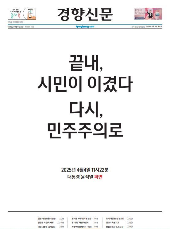 4월5일자 경향신문 윤석열 파면 특별판 1면 |
