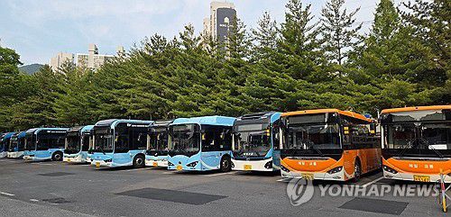 (창원=연합뉴스) 김선경 기자 = 지난달 31일 경남 창원시 성산구 대방동 시내버스 회차장에 파업으로 멈춰선 버스들이 줄지어 서 있다. 2025.6.1 ksk@yna.co.kr